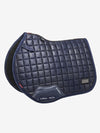 The signature PU leather girth protection area is complimented by an embossed logo and carries the usual signature LeMieux lower girth strap with its inner locking loops, and the D-Ring tabs hold the pad securely to the saddle